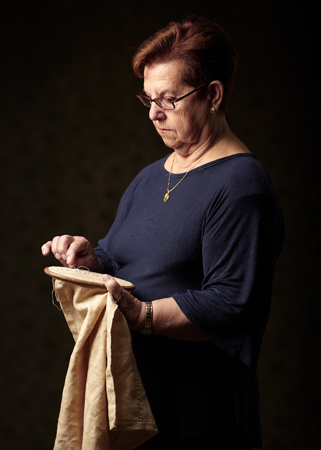 Enfermera jubilada. Ahora confecciona trajes regionales de La Rioja para muñecas de porcelana.