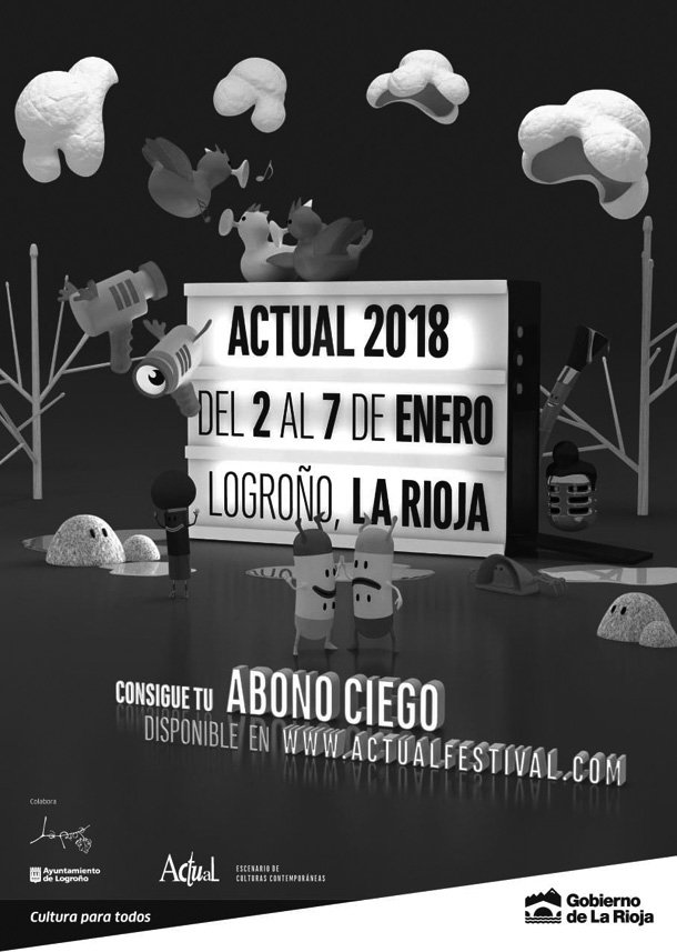 La 28 edición del festival Actual ya tiene fechas, se celebrará entre el 2 y el 7 de enero. En el programa de la primera cita cultural del año convivirán propuestas musicales, cinematográficas, teatrales y artísticas. Además, en 2018 Actual concederá protagonismo a las artes plásticas y ofrecerá una programación infantil específica. Entre las novedades avanzadas durante la presentación destaca que el festival recupera las tres grandes noches de conciertos en el Palacio de los Deportes de La Rioja y mantiene la Guerra de Bandas, el concurso dirigido a grupos y cantantes emergentes, que volverá tener en el Biribay Jazz Club su escenario.