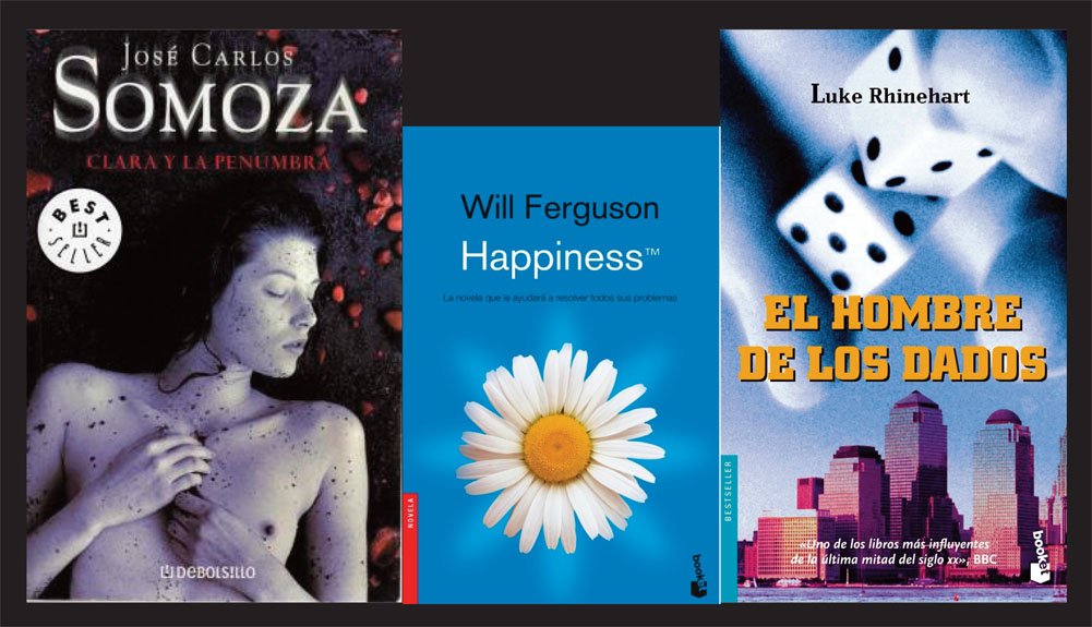Así, para estas semanas de calor nos hemos decidido por cinco escritores, Will Ferguson, Christopher Morley, José Carlos Somoza, Rodrigo Fresán y Luke Rhinehart y cinco de sus novelas, ‘Happiness’, ‘La librería ambulante’, ‘Clara y la penumbra’, ‘La velocidad de las cosas’ y ‘El hombre de los dados’. Un poco de todo, según rezan sus contraportadas. La novela que le ayudará a resolver todos sus problemas; el libro que te hace sonreir cuando quieres que las tardes sean más ligeras; intriga y ciencia ficción –no podía faltar-; un clásico de la posmodernidad y unos de los libros –dicen- más influyentes de la última mitad del siglo XX.