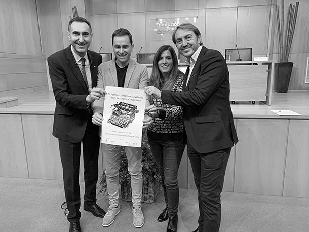El 'Premio de Literatura Ilustrada Villa de Nalda e Islallena' ya cuenta con la convocatoria de su IV edición. El Alcalde de Nalda e Islallana, Daniel Osés; acompañado del presidente de la Fundación Vivanco, Santiago Vivanco; de la directora de la Editorial Siníndice, Judit Arteaga, y del director del Centro Cultural Ibercaja, Millán Lozano; presentó el certamen, que organizan el Ayuntamiento de Nalda e Islallana y la Editoriral Siníndice, con la colaboración de la Fundación Vivanco e Ibercaja Obra social.