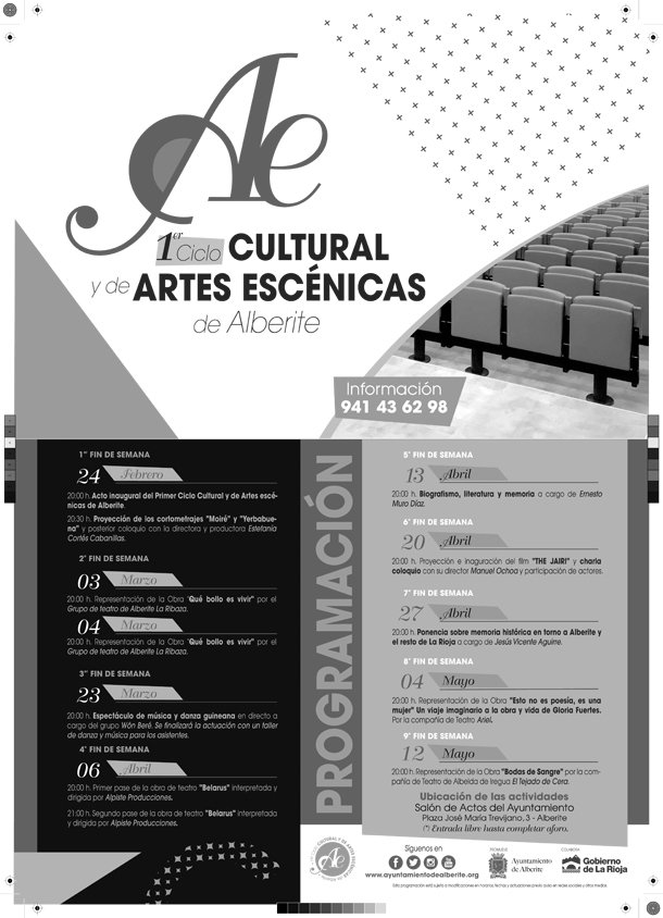 El teatro pondrá también el punto final a la primera edición del Ciclo de Artes Escénicas de Alberite. Será a las 20 horas del 12 de mayo con la representación de la obra ‘Bodas de Sangre’, a cargo de la compañía de teatro de Albelda de Iregua El tejado de cera.