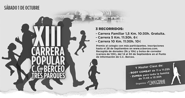 Las inscripciones se podrán realizar hasta el 30 de septiembre a través de www.avaibooksports.com/inscripcion/indez.php?id=3904 y presencialmente en el Punto de información del CC Berceo desde el 14 al 30 de septiembre. Por otro parte, la recogida de dorsales, para las carreras de 5k y 10k, así como la bolsa del corredor, estará abierta del 14 al 30 de septiembre en el Punto de información del C.C. Berceo.
