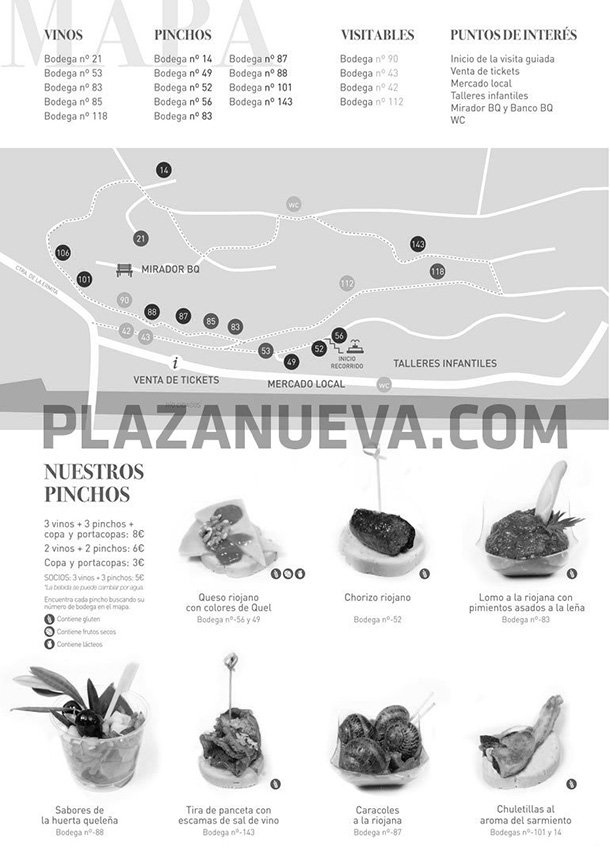 A partir de las 12 horas se abrirá el recorrido en la Fuente de Quel para visitar los Calados del Barrio Bodegas, para degustar los caldos y saborear los gastro-pinchos, todo ello estará amenizado por la Ronda del Emboque. El coste de 3 vinos y 3 pinchos más una copa y portacopas será de 8 euros y de 6 en el caso de 2 vinos y 2 pinchos. Los socios de la Asociación Barrio Bodegas podrán beneficiarse de un precio reducido de 5 euros para 3 vinos y 3 pinchos.