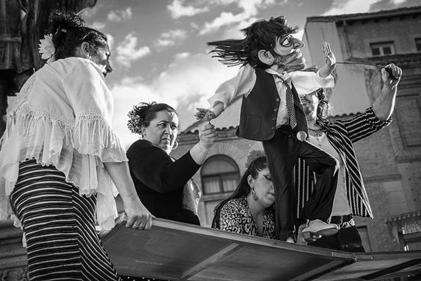 ‘La cabra’ juega con la sorpresa de contemplar entre el bullicio de la gente como una troupe de marionetistas gitanos irrumpe en medio de la calle entre palmas y música de raza. “Personajes todos –señala el programa- rebosantes de arte y maestros de la des-vergüenza”.