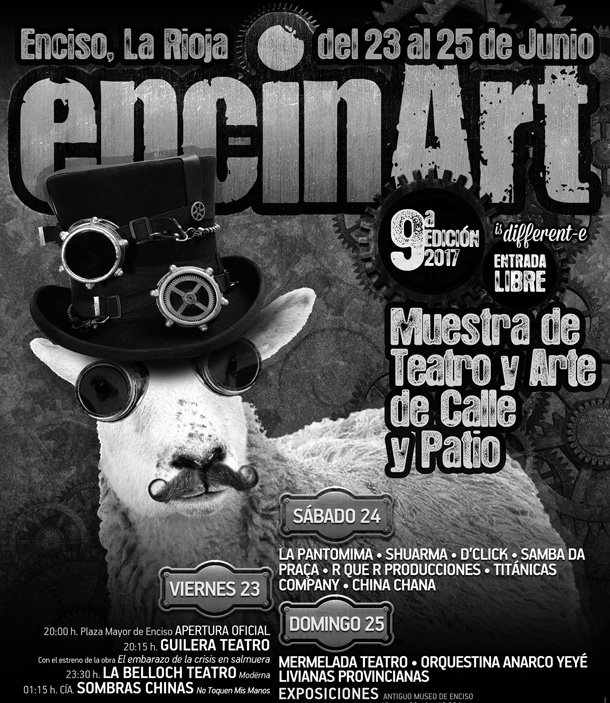 En la mañana de la jornada final de ENCINART el protagonismo volverá a ser para los más pequeños. La compañía logroñesa Mermelada Teatro nos presenta 'Haciendo las Américas', un espectáculo de cuentos latinoamericanos teatralizados. La Orquestina Anarco Yeyé. dará continuidad al día con la interpretación elegante, divertida,de temas clásicos de guateque, del rock de los 60, vals, boleros, rancheras... El programa se completa con las Livianas Provincianas y su particular visión y revisión del cuplé. "Una divertidísima y atrevida puesta en escena de estas dos mujeres afincadas en Madrid con el ADN enciseño de una de sus integrantes".