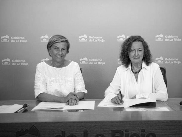 La consejera de Desarrollo Económico e Innovación del Gobierno de La Rioja y vicepresidenta de la Fundación San Millán de la Cogolla, Leonor González Menorca, y la presidenta de Factoría Cultural Asociación de Apoyo al Emprendimiento en las Industrias Culturales y Creativas, Rosina Gómez-Baeza, han firmado un convenio de colaboración, con el fin de trabajar en el ámbito de la formación y el emprendimiento de las Industrias Culturales y Creativas, en especial del sector del turismo patrimonial en San Millán de la Cogolla.