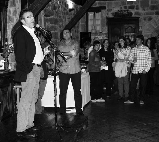 El restaurante La Vieja Bodega de Casalarreina celebró sus veinte años de historia por todo lo alto. Una cita que el propietario del establecimiento, Ángel Pérez Aguilar, dedicó a “amigos” de La Vieja Bodega y donde se dieron cita también Javier Ruiz Taboada, como presentador del evento, y el monologuista David Navarro, quien puso la nota de humor. El acto estuvo acompañado, como no podía ser de otra manera, de un variado menú, y sirvió también para rendir un cercano homenaje a Ángel por su trabajo al frente de La Vieja Bodega.
