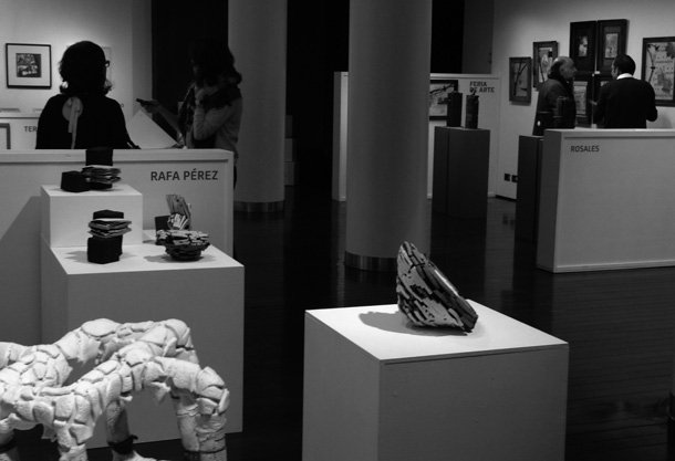 Las obras de cinco artistas riojanos han transformado la Sala de Exposiciones del Centro Fundación Caja Rioja en una Feria de Arte. Así será hasta el día 22 de diciembre. Carlos López Garrido, Rafa Pérez, Teresa Rodríguez, Carlos Rosales y Taquio Uzqueda son los protagonistas de un evento que tiene por objetivo apoyar a un colectivo –el de los artistas plásticos- que ha sufrido especialmente la situación de crisis que atraviesa la sociedad.