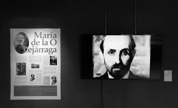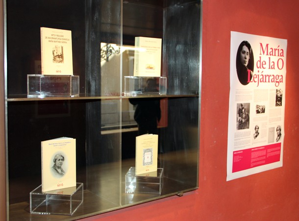 El catálogo de la muestra recuerda que María de la O Lejárraga (San Millán de la Cogolla, 1874-Buenos Aires, 1974) fue escritora y feminista, conocida también como María Martínez Sierra, seudónimo que adoptó a partir de los apellidos de su marido, Gregorio Martínez Sierra. Fue maestra pero sus inquietudes literarias chocaban con la sociedad en la que creció, cerrada a la idea de que la mujer se dedicara a las artes y las ciencias. En el año 1900 se casó con Gregorio Martínez, un escritor más joven que ella, y sin revelarlo públicamente permitió que su esposo firmara como propias las piezas de teatro que ella escribió. Antes del fallecimiento de Gregorio, firmó un escrito en el que reconocía la coautoría de su mujer. Feminista y afiliada al Partido Socialista, estuvo sometida siempre a su marido en un estado de explotación. La Guerra Civil la llevó al exilio y falleció en Argentina en 1974.