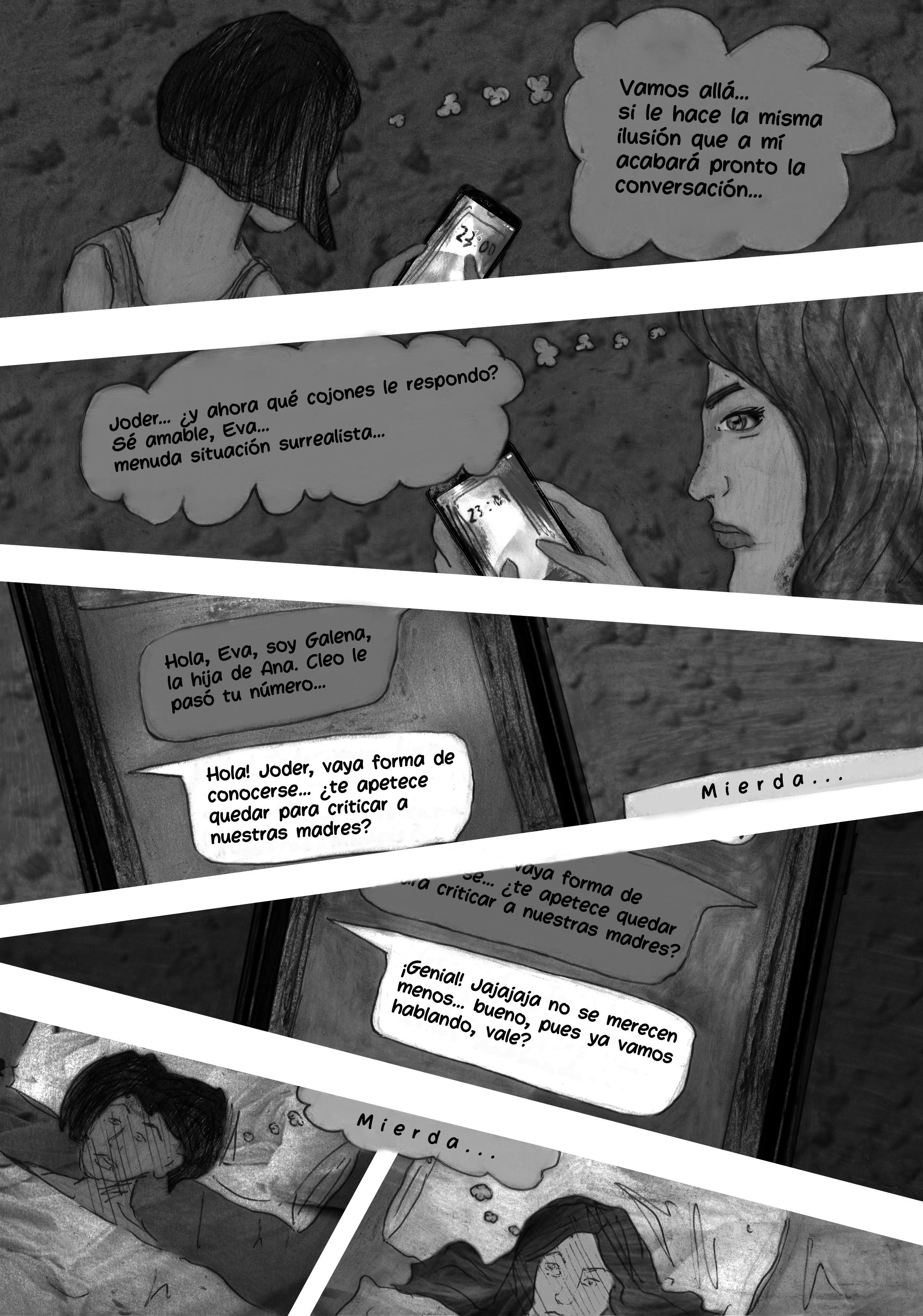 Cuando inicié el proyecto de novela gráfica quería simplemente testear nuevas formas de expresión dando forma superficial a personajes que retrataran mi presente y el de mi entorno más cercano. Sin embargo, la obra fue cobrando vida propia y echó a andar por sí misma entrelazando personajes, visibilizando problemáticas reales...