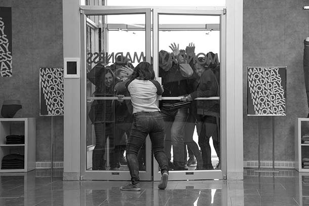 ¡La idea inicial fue en realidad solo sobre pantalones asesinos! Escribimos un primer guion y lo aparcamos porque era terrible. La historia versaba sobre unos pantalones que mataba chicas en una escuela secundaria. Nada interesante. Pero nos encantó la idea de pantalones asesinos y años más tarde Patricia, que había trabajado en la tienda The Gap, sugirió que lo instaláramos en una tienda. Fue entonces cuando la historia realmente comenzó a tomar forma. Sabíamos que estábamos en algo, pero todavía no teníamos toda la crítica social. De nuevo lo dejamos a un lado, y años más tarde sentí nuevamente que era hora de retomarlo. Empecé a mirar documentales sobre 'fast fashion' (la moda rápida) y la historia se solidificó muy rápido después de eso. Entonces, en la última versión del guion se incluyó todo el aspecto de crítica social. Es como si la película esperara hasta que estuviéramos listas para escribirla. Salió muy rápido después de eso; en unos meses habíamos escrito una nueva versión. ¡Solo tomó un tiempo llegar allí!