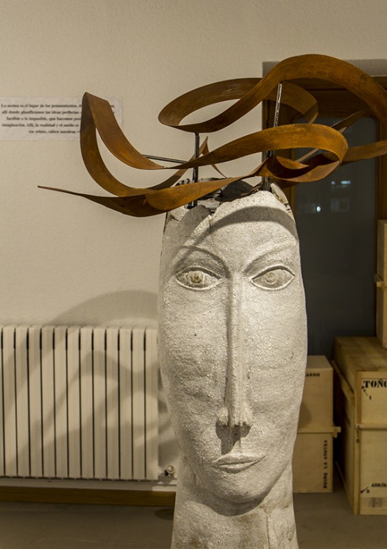 Apunta el catálogo de la exposición ‘Dándole vueltas a la azotea’, que el artista alfarero y ceramista, Toño Naharro presenta en la nueva Sala de la UNED que “la cabeza es, sencillamente, el soporte, el laboratorio, donde se desarrolla la idea”. El nuevo espacio expositivo inaugura su actividad con una muestra compuesta de siete piezas que se adentran en la relevancia de la parte superior del cuerpo humano, de la cabeza, dónde se supone que se aloja el cerebro. “La azotea es, por tanto, el lugar de los pensamientos, de los sentimientos -describe Naharro- allí planificamos las ideas perfectas o descabelladas, lo factible y lo imposible, que hacemos posible con nuestra imaginación”.