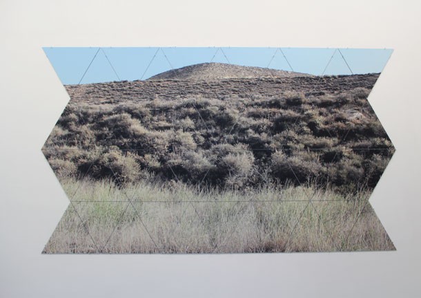 Ante ‘Equidistancia’ (720º), una fotografía de un paisaje natural en el que se aprecian cinco niveles horizontales, seccionada en triángulos idénticos, el artista explica que “como dibujante, en la imagen, todo se encuentra a la misma distancia. Coja el segmento que coja yo siempre estoy en el centro. La idea es que todo ocurre desde tu centro”.