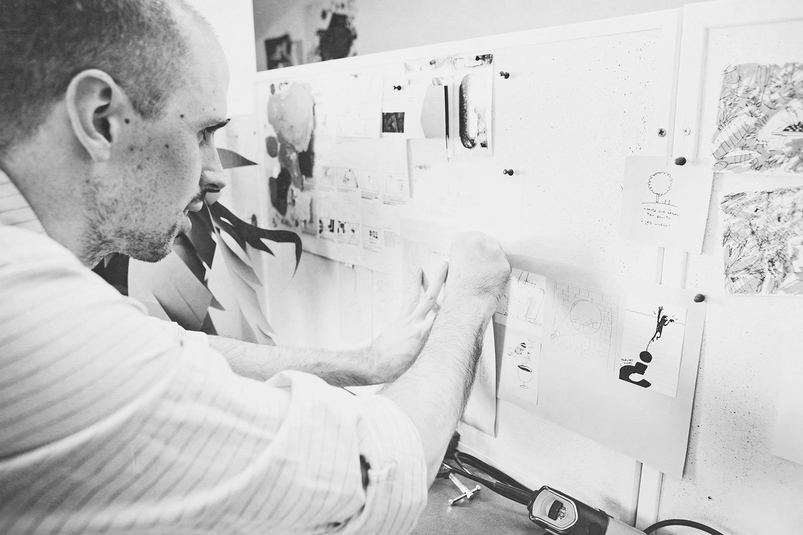 No recuerdo una chispa concreta, fue un proceso del que no te das cuenta hasta que no miras atrás y le encuentras cierto sentido. Sí recuerdo algunos momentos clave como el primer libro ilustrado que me encargaron, poco después de acabar de estudiar diseño: me parecía encajar con aquello. O cuando me encargaron unas ilustraciones para unas latas de Coca-Cola y pensé que realmente podría trabajar por mi cuenta. Poco después dejé el estudio donde trabajaba como diseñador gráfico. Era un estudio de diseño de producto e interiorismo, y cada vez tengo más claro que estar allí, con Martín Azúa, influenció mi manera de acercarme a proyectos que no son estrictamente gráficos.