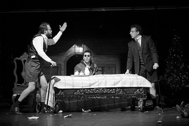 La compañía de teatro Club Caníbal representa en el teatro Bretón de Logroño 'Algún día todo esto será tuyo', el tercer capítulo de la trilogía teatral 'Crónicas ibéricas'. Club Caníbal son Chiqui Carabante -dirección y dramaturgia-, y Font García, Juan Vinuesa y Vito Sanz sobre el escenario. Los cuatro son responsables de los textos y las historias que representan. Entienden el teatro como un espacio de libertad y el humor -el neorrealista y surrealista, esencialmente-, como el vehículo para narrar y contar. 'Desde aquí veo sucia la plaza' -sobre el sacrifio animal por divertimento- y 'Herederos del ocaso' -sobre la picaresca española- componen los capóitulos primero y segundo de la trilogía. En 'Algún día todo esto será tuyo', Club Caníbal cuenta los últimos días del presidente de El Corte Inglés, "uno de los primeros capitalistas confesos', describen. Berlanga, Azcona, Gila, Faemino y Cansado son alguno de los genios del humor que surgen en la conversación con Chiqui, Font, Juan y Vito./Javi Muro