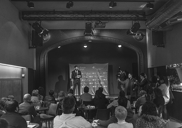 En dos meses de vida, Sala Negra ya ha colgado el cartel de ‘no hay entradas’ en siete ocasiones. “El boca a boca está funcionando muy bien; quienes acuden salen encantados. Tenemos claro que queremos ofrecer al público opciones de arte, cultura y entretenimiento estimulantes y de calidad”. Así, Alejandro Ramonda enumera los objetivos marcados al abrir a Sala Negra. “Queremos programar semanalmente espectáculos artísticos y conmovedores, en los que espectador y artista disfruten del espacio y de la proximidad mutua. Queremos vincular el mundo del aprendizaje con el mundo profesional del teatro. Queremos ser referente cultural y pieza clave en la dinamización de la escena artística de La Rioja. La Sala Negra Café Teatro es un espacio para disfrutar y compartir piezas escénicas, pero sobre todo un lugar en el que prima la calidad artística, y que está gestionado con el mismo nivel de profesionalidad y rigor que siempre ha impulsado a esta empresa”. Alejandro observa el escenario durante la conversación, sobre las tablas se encuentran ya el sofá y el sillón que forman parte del atrezzo de la obra que se representará en tan sólo unas horas. Es viernes, en Sala Negra, en la calle Lardero de Logroño frente a la plaza Primero de Mayo, toca sesión doble. Teatro para abrir boca, sesión canalla para alcanzar la madrugada./Javi Muro