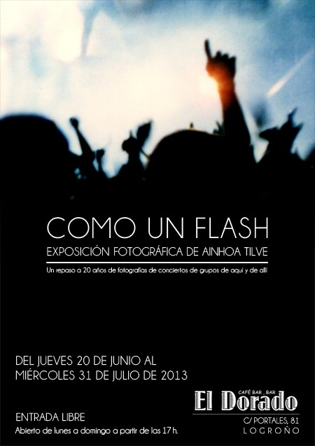 Seguro que Ainhoa Tilve ha disfrutado en más de una ocasión de una cerveza en El Dorado, el local situado en la calle Portales de Logroño. Dicen que la tiran como nadie. Ahora, Ainhoa expone allí sus fotografías, bajo el título ‘Como un Flash’. Ainhoa es periodista y está especializada en Comunicación Audiovisual y Artes Digitales. Ha desarrollado su carrera profesional en el campo de la publicidad como diseñadora gráfica, realizadora audiovisual, y productora de eventos. Últimamente –apunta- mira hacia la gestión cultural. Coloca con mimo y cuidando cada detalle las fotografías sobre las paredes que tan sólo unos segundos antes soportaban los retratos de Jerónimo y John Wayne. El Dorado se ha ganado la fama de pinchar buena música y es, precisamente, la música en directo lo que muestran las imágenes de ‘Como un Flash’. Ainhoa llegó a la fotografía siendo una niña. Con ocho años le regalaron su primera cámara: una réflex Mamiya de 35 mm y desde entonces –como diría el gran jefe indio- no ha dejado de robar almas disparo a disparo./Javi Muro