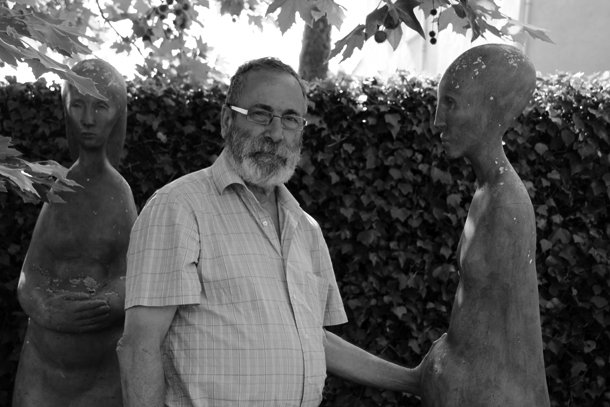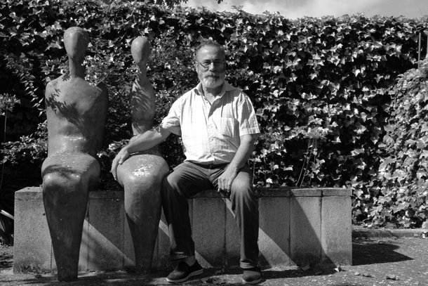 Félix Reyes es escultor, dice que la palabra artista es demasiado comprometida. Es también el promotor de ‘Arte en la Tierra’ el proyecto que cada año –desde hace diez- reúne a cinco creadores con la naturaleza de Santa Lucía de Ocón (La Rioja) en una inmejorable sala de exposiciones a cielo abierto. Allí, en Santa Lucía tiene Reyes su estudio y su vivienda. Allí, en el jardín, comenzamos la conversación en un triángulo formado por tres sillas; en la que queda libre parecen querer sentarse las esculturas que residen entre la hiedra y los árboles y que rodean la casa. Escuchando a Féliz Reyes no sería extraño. El escultor reitera una y otra vez la importancia del diálogo con la obra. Una obra figurativa, pero no realista. Una obra que incita a partipar./Javi Muro