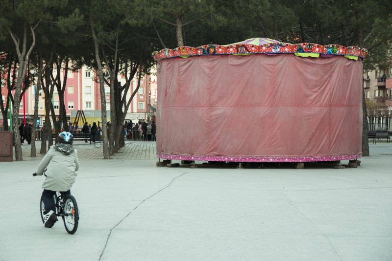 La partida de ajedrez se adentró en el otoño y a tan sólo un metro de distancia el café mañanero es ya un recuerdo sobre el mantel de cuadros rojos y blancos. Si giras sobre ti mismo en el centro del patio central de La Gota de Leche compruebas que noviembre ha invadido las piscinas, que la adolescencia ha empujado el caballito de madera junto al contenedor de basura y que la valla publicitaria vecina de la carretera viste un blanco inmaculado. Observas también que el eco recorre la carpa donde el evento reunió a un centenar de personas y que los patitos de goma se amontonan en el sumidero de la bañera arrastrado por el agua del último baño y los sueños del pequeño nadador que tan sólo un instante antes chapoteaba entre la espuma. Quizá el mismo niño que llega tarde sobre su bicicleta al tiovivo instalado en la plaza. En un lateral, la red de la pista de tenis se desintegra en una nostalgia de saques y voleas, mientras el balón descansa sobre el larguero de la portería olvidado tras el partido, tan sólo la fotógrafa Ruth Rodríguez parece haberse percatado de que la pieza imprescindible reposa mientras espera que el juego se reanude. Las fotografías de Ruth Rodríguez cuentan historias. En ‘Game Over (la partida llega a su fin)’ relata espacios, juegos e incluso momentos de su propia vida.