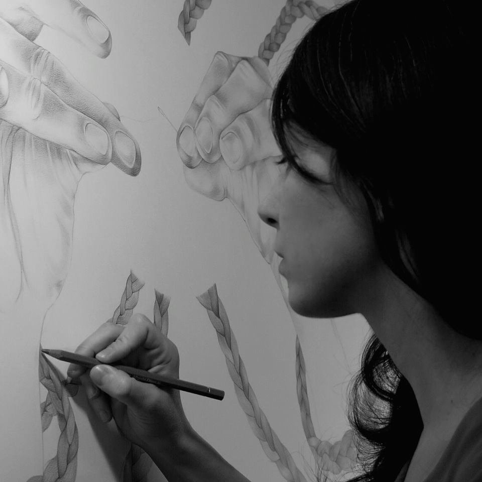 El proyecto ‘Tejiendo la Historias’ dio sus primeros pasos en el verano de 2016 y un año después recorre diferentes salas, mostrando el trabajo de Ana. “Los retratos van acompañados –describe- de textos donde explico la importancia de la lucha vital y las aportaciones artísticas de cada una de las mujeres retratadas”. A través de sus dibujos, Ana Villamuza trata de aportar “mi hebra” al tejido de historiadoras como Patricia Mayayo, Bea Porqueres, Teresa Alario, Estrella de Diego, Victoria Combalia, Ángeles Caso, Diana Larrea, Marian Lopez F. Cao, Griselda Pollock, Rozsika Parker, “entre otras muchas y cuya labor ha sido para mí indispensable a la hora de entender en qué punto estamos las creadoras hoy en día y cómo podemos seguir empoderándonos, buscando esa genealogía en donde mirarnos”.