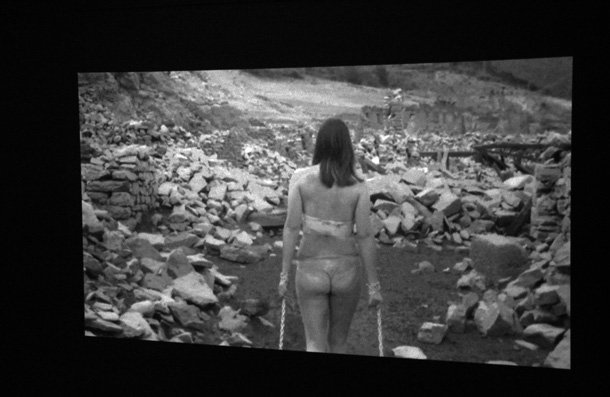 La mujer arrastra las cadenas al caminar. Solitaria, deambula entre las ruinas de un paisaje decadente. Unas voces parecen arroparla. Son diálogos de películas, pasajes de ‘Juno’, ‘Las vírgenes suicidas’, ‘Agosto’, ‘Revolutionary Road’ o ‘Interiores’. En el vídeo instalado en la Sala de Exposiciones del Instituto Riojano de la Juventud las ruinas representan quizá ¿un espacio o un lugar perdido por la mujer? ¿el pasado o el presente silenciado y anulado? ¿Un paraje que la mujer anhela conquistar? Las imágenes que nos presenta Paula Bañuelos hablan de una mujer prisionera que transita un camino difícil y pedregoso. Así lo describe Mónica Yoldi López, directora de la Escuela de Arte y tutora del proyecto ‘Looking for the Bechdel film’, premiado y desarrollado por Paula Bañuelos dentro de la Muestra de Arte de La Rioja.