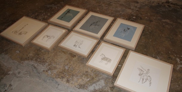 Desde el centro de la sala, el dibujante recorre con la mirada cada una de las series que dan forma a la exposición. “Universal, porque no hay días que cuenten los noventa y seis; universal, porque los caballos desbocados han parado ya cansados; universal, porque muerto el perro sigue la rabia; universal, porque la nobleza no existe, por que el noble ha muerto”. En definitiva, un viaje de lo universal a lo singular.