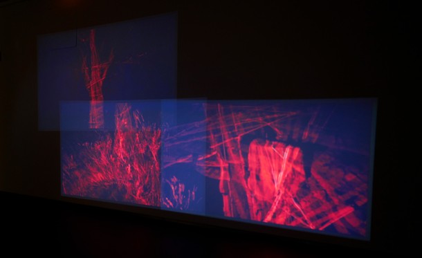 Para Julio, los vídeos que acompañan a las fotografías son “un escaneo del suelo, del terreno, de las piedras, de los árboles, como una catalogación de datos, otra manera diferente a la estética”. Otra imagen, otra percepción, la tecnología aplicada a la plástica para constatar como su uso ha cambiado nuestra forma de mirar./Javi Muro