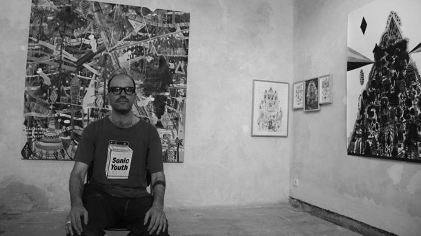 Diego siempre ha dibujado y pintado e incluso participó en obras de teatro. La vena creativa comenzó a latir desde pequeño. Aún así, estudio Veterinaria en Zaragoza. La vocación triunfó sobre la razón y terminada la carrera decidió hacer caso al impulso artístico que seguía latente y comenzó a adentrarse en las técnicas del grabado y la litografía. Ahí, empezó a forjar su carrera. “Ahora, sigo en el arte porque es una necesidad, es algo romántico que me ayuda a perseguir el objetivo de la belleza”. Un camino que disfruta desde su taller en la sierra, al que ha bautizado como ‘Bunker feroz’… quizá, por que, tal y como advierten, Aurora y José Miguel, desde los bosques cameranos ha llegado a la ciudad un artista termonuclear… así que lean el cartel antes de acceder al interior de Planta Baja: ‘Disfruten, hay una fiera en la Sala’…/Javi Muro