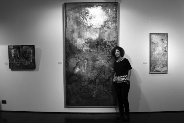 Nieves Marraco parte de una mancha, de una abstracción, como origen de sus obras. “Desde ahí –indica- me dejo llevar hasta que va surgiendo el tema”. Tal y como señalaba su compañera de estudio, coincide en la influencia del estado de ánimo. Se reconoce tímida, lo que unido al estilo intimista que acompaña sus pinturas, se transformaba en un obstáculo a la hora de exponer. “El empujón que nos ha dado Deme –explica- ha sido esencial porque me pongo muy nerviosa”.