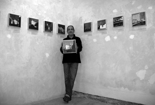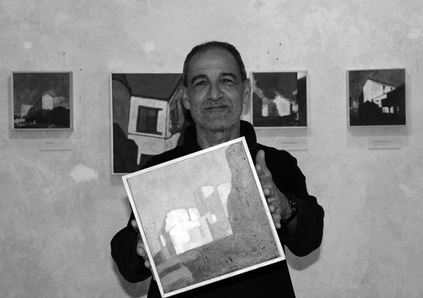 Toño Vega, filólogo de formación, trabajó a lo largo de once años como caricaturista para El Periódico de Cataluña. Reañizó una caricatura al día hasta firmar más de tres mil ilustraciones. La llamada de la pintura llegó para el artista logroñés bien pasada la cuarentena. “Fue –dice- una especie de caída del caballo”. Desde entonces ha ido definiendo su estilo, desde las acuarelas al acrílico, desde los grises al color. Para completar la serie que ahora expone en Planta Baja ha seguido un camino que requiere tiempo y paciencia. “Se trata de qué siento al contemplar una luz determinada. Eso trato de contar en mi pintura, las emociones que genera ese instante. Cuando al caminar por una calle la luz me genera esas emociones realizo una fotografía, luego la recorto y compongo la escena, después la trazo y la pinto. Es un proceso laborioso pero muy satisfactorio”.