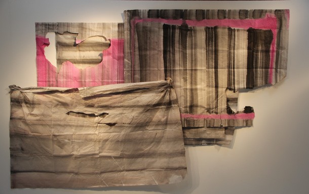 ‘Una semana cualquiera’ ha sido la obra que ha recibido el primer premio. Lleva la firma de la madrileña Olalla Gómez y presenta tres hileras de páginas de periódicos de gran tirada. Los textos han desaparecido difuminados y tan sólo perduran los titulares, las fotografías y las fechas; esencial la data. “Quería mostrar –explica Olalla- el efecto deja vu, la repetición de las noticias, la sensación de esto ya lo he visto. Quería realizar una crítica al poder y a los medios de comunicación”.