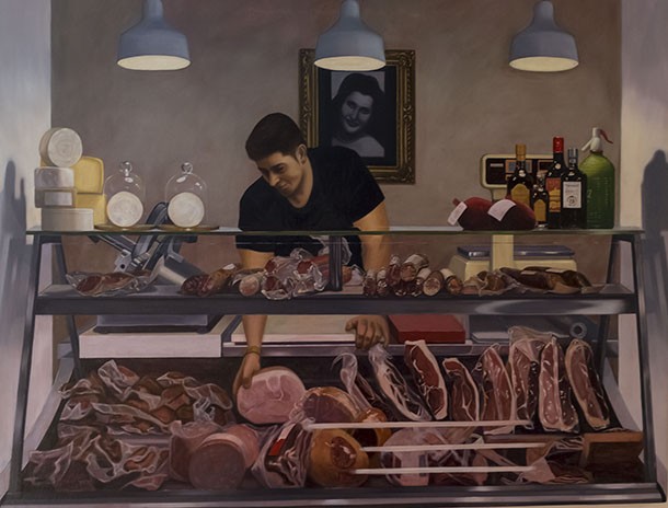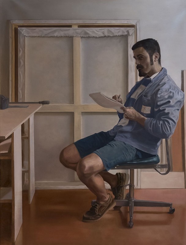 “A través de las pinturas que componen la muestra -detalla el joven artista logroñés, 24 años- mi objetivo ha sido recoger escenas del ser humano en su ámbito laboral dentro de oficios tradicionales y en un sentido positivo de elevación del oficio como verdadero motor de la sociedad”. Domingo presenta una extraordinaria colección de retratos que captan a personas en instantes cotidianos de sus respectivos oficios. “Hoy en día -recuerda Jesús- la tecnología se encuentra en todos los lugares, vivimos en un mundo dominados por las prisas, un mundo acelerado. Vamos al supermercado, pasamos por caja, pagamos, regresamos a casa, y no interactuamos con nadie. Por eso reivindico en mi pintura el trabajo artesanal, esa tradición que tiende a desaparecer”. Jesús Domingo pone el ejemplo los puestos de la céntrica Plaza de Abastos, cuyos puestos, le han servido de modelos. “Mis abuelos compraban allí, también mis padres y ahora lo hago yo. Quienes atienden los puestos transmiten confianza, te fías del producto que te venden. No se trata de un paquete colocado en una estantería y envasado al vacío. Es gente que vende su producto, gente con la que hablas”.
