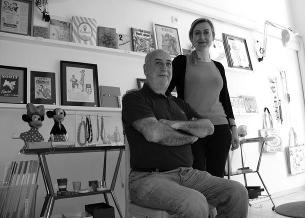 Desde el escaparate que da acceso a la tienda se muestra un infinito de objetos de diseño. Algunos habituales de los hogares españoles unas décadas atrás y ahora transformados en piezas bañadas de un soplo vintage y otros –muchos- sorprendentes. Cocteleras, transistores, vajillas de cocina, botellas, jarrones, teléfonos, juegos de mesa y juguetes, mobiliario, mesas, sillas, sillones o lámparas y esa pizarra en forma de cocinero en la que apuntar la lista de la compra.