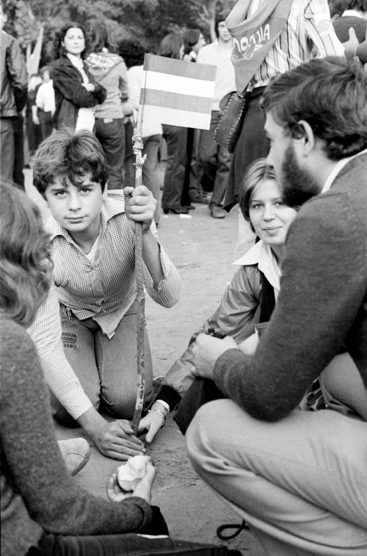 Al rebufo de los retratos se cuela la imagen de un joven –casi niño (ver galería de imágenes)- sosteniendo una bandera. “Esa fotografía es de la celebración del primer Día de La Rioja y es también mi primer trabajo periodístico, porque también he trabajado, aunque poco, para prensa. Esa foto se utilizó después en un cartel”.
