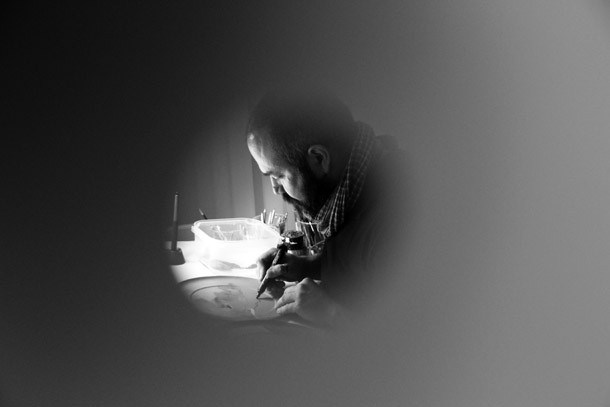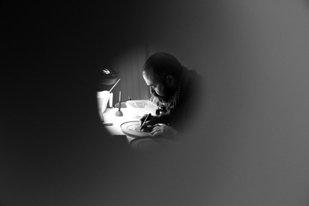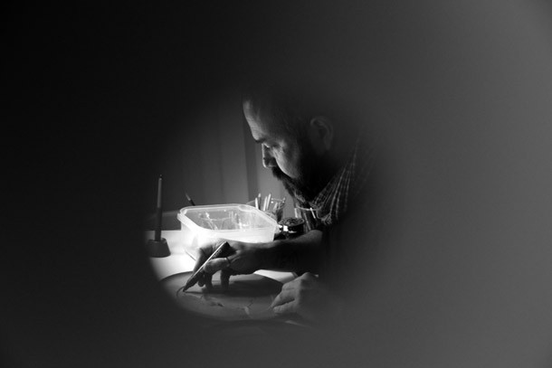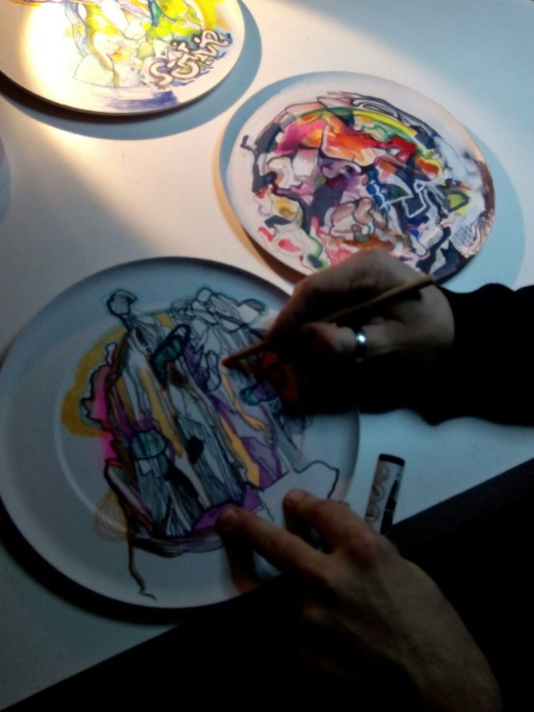 El artista devuelve por instante la mirada hacia los pequeños orificios desde los que le observan y reconoce sentir la vibración de la comunicación. Concluye la conversación con el deseo del artista de que la gente que está siguiendo cada trazo suyo sobre uno de los platos comprenda qué es lo que hace y porqué… seguimos curioseando artistas…/Javi Muro