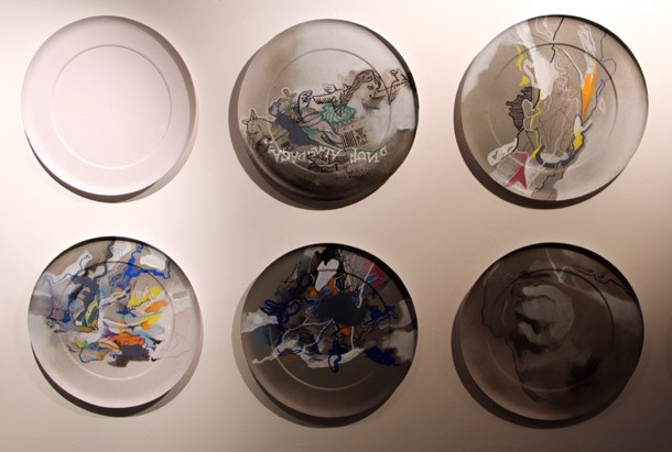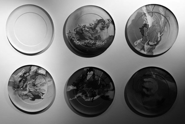 En el interior, Carlos Corres no oculta que disfruta de su trabajo. “Me divierto creando sinergias a través de las líneas y los colores”. Al observar detenidamente la serie de platos ya concluidos, la imaginación conecta con la obra de Corres y percibes geografías, mapas que podrían ser de islas aún por descubrir, ves ríos y curvas de nivel; recreaciones de piezas de la antigua Grecia, logos publicitarios, nubes, radiografías o incluso el plan trazado para llevar a cabo una expedición imposible a algún lugar inexistente. “Parecen mapas u otras cosas, pero no lo son –explica Corres-, son la relación de ideas o momentos del día, son segundos y sensaciones que me permiten ir construyendo algo que no existe sin una forma concreta. Es un reto, un divertimento, es un invitación a leer un poco más y un poco más allá de los que nos cuentan, se trata de ir un poco más allá de esa convocatoria a comprar algo”.
