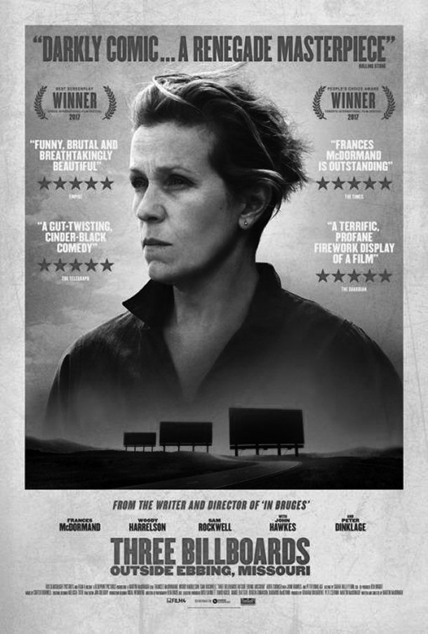 Martin McDonagh firma aquí una obra que parece nacida con el sello de clásico, con personajes, con nombre y apellido, que se graban a fuego en la memoria desde que conocemos su realidad. El cineasta, además, demuestra que es posible alejarse de los convencionalismos habituales a la hora de mostrar a la mujer en la pantalla. Aquí, nuestra heroína, se presenta en toda su compleja humanidad, en la piel de una mujer madura sin maquillaje, impertérrita en su mono vaquero, a vuelta de todo, valiente, obstinada, respondiendo con contundencia a las consecuencias de sus actos y asumiendo los daños colaterales que puedan surgir a partir de ellos. Y lo hace desde el corazón, la rabia y la desesperación. En lucha contra todo un pueblo, esta madre coraje no se doblega ante nada, empeñada en romper con los esquemas de una sociedad pueblerina y homófoba que la asfixia y la juzga sin compasión.