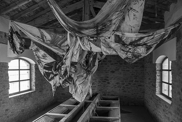 En esta ocasión, la obra ocupará no sólo la cuadra de EspacioArteVACA sino que se extenderá hasta el Lavadero Municipal de Viniegra de Abajo, contiguo al centro de arte, "en una dialéctica entre lo privado y lo público que busca generar contrastes y conexiones por igual". En palabras de Pablo Bernáldez, uno de los promotores del proyecto cultural, "la potencia de la muestra de Zorromono queda demostrada en instalaciones de gran tamaño compuestas por humildes telas en blanco roto, intervenidas con tinta negra y después laceradas con tajos seguros e incontestables, atravesadas en ocasiones por mástiles que terminan por desgarrar los entresijos de las piezas, mostrándonos entonces toda su potencia expresiva".