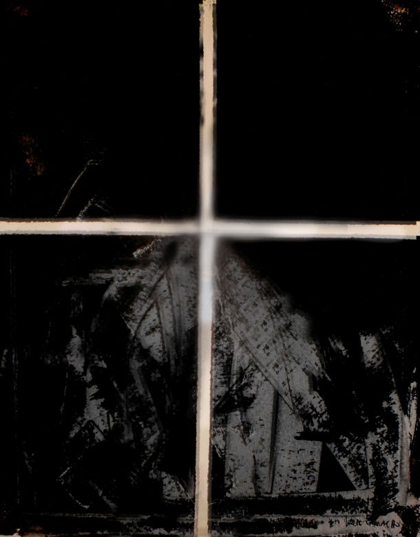 Durante la conversación, Valle nos habló de 'Polaroids' -acrílicos en blanco y negro- inspirada también en la obra de Xijian, 'Después del diluvio', así como de de 'Huida y represión', una obra situada en la caligrafía abstracta, realizadas en tinta china sobre papel y lienzo, su trabajos anteriores.