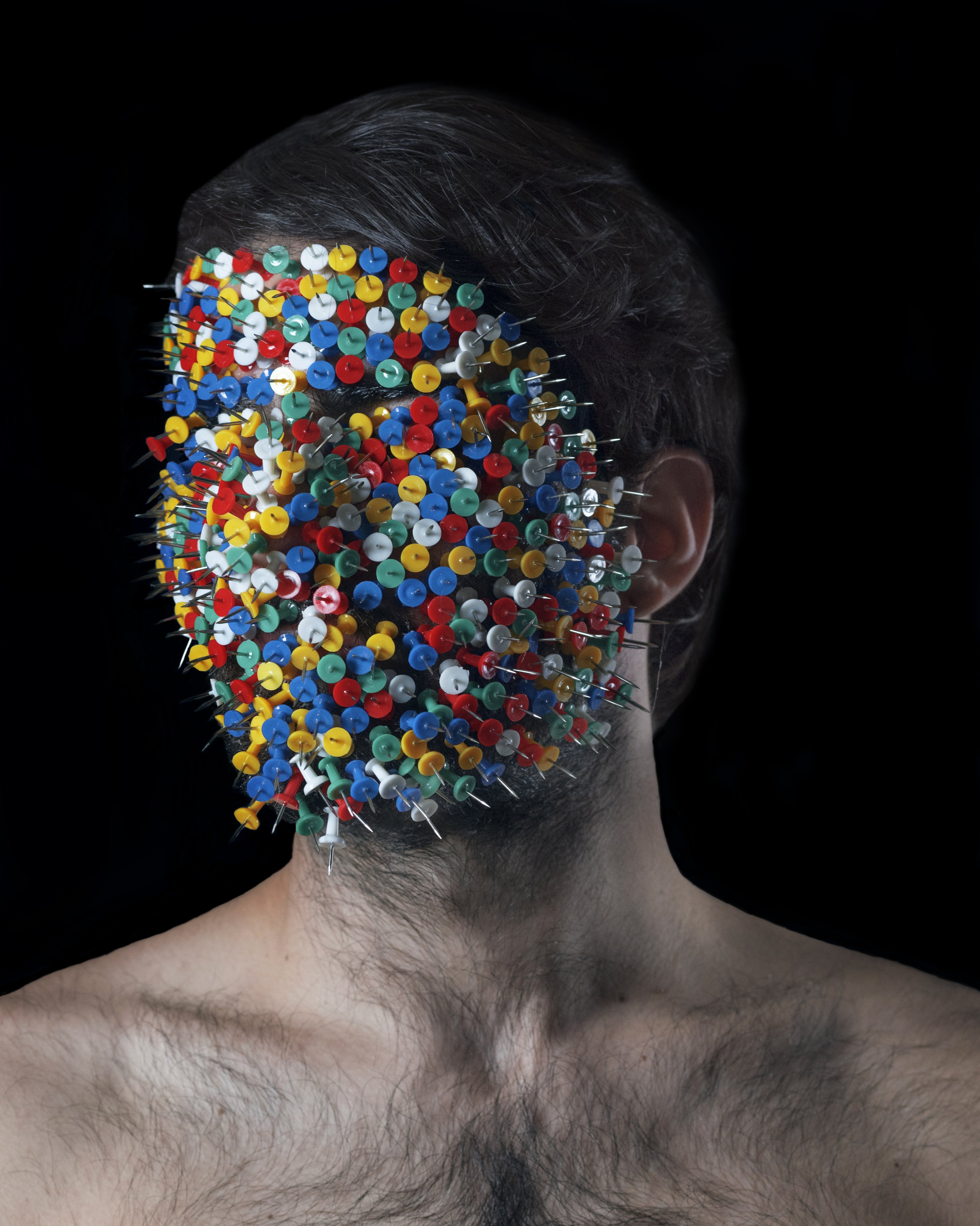 Cubro cada pieza con el elemento que me generaron los sujetos en la primera impresión – todos ellos cercanos a mí–. Al ocultar su rostro, hablo de una identidad que se esconde más allá de estas piezas, así el observador tiene la curiosidad de saber más del retratado y no se queda con una primera impresión.