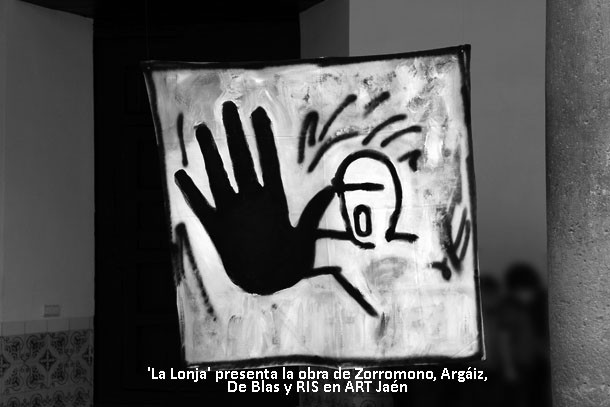 De la mano de La Lonja están presentes en ART Jaén los artistas Carlos Zorromono, con la obra 'Balada de consentimiento a este mundo'; Carmelo Argaiz, con 'Corvus suite'; Javier de Blas, con 'Cuaderno' y R.I.S., que presenta 'Kontuz!'. David Martínez es el comisario de la exposición que juega entre el romanticismo, el clasicismo y modernidad, el expresionismo y el punk.