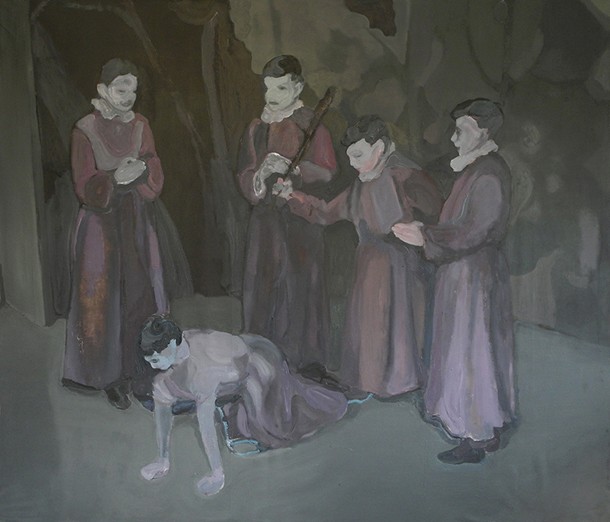 En cierta forma Nebojša plantea una exposición donde el espectador deberá superar ese primer extrañamiento ante pinturas perturbadoras, obligado a recorrer las salas donde la figura del infante ‐como personaje central‐ nos fuerza a construir parte de su relato. Personajes borrosos y místicos cuya atmósfera se va volviendo más densa y oscura, espacio misterioso abierto a un número posible de constelaciones sociales.
