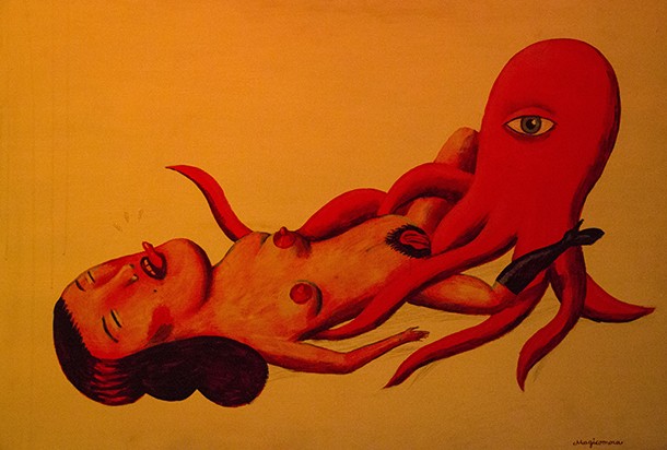 El estilo creativo de Sergio Mora genera un más allá que, valga la redundancia, te traslada más allá de la mera contemplación. Es la ‘Magicomora’, cómo ya se conoce una forma de trenzar universos propios que Mora puebla de seres asombrosos y, al mismo tiempo identificables en el mundo real. “La obra de Sergio -describe el comisario de la exposición, Julio Hontana- se enmarca en el surrealismo pop, un estilo que bebe del Lowbrow, el Undergrown, la hiperactividad pop y el convencimiento de que cualquier medio es válido para la difusión de la obra”. Y es ahí donde surge el entendimiento estético que enlaza la música, los cómics, la literatura, la pintura, el graffiti y el video en ‘Retrofutura’.