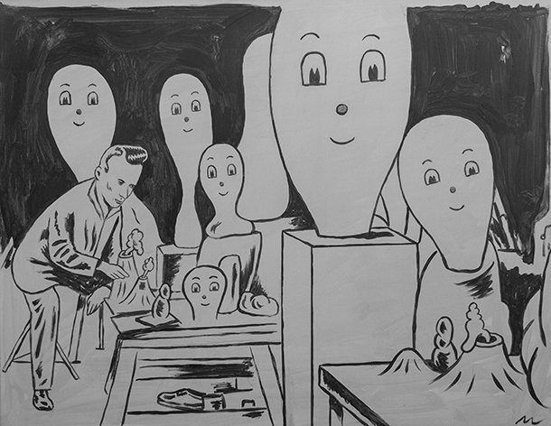 Están avisados. Al aceptar adentrarse en ‘Retrofutura’ son conscientes de que el viaje será múltiple. Desechen toda idea sobre la simple visita a una colección pictórica en la que admirar trazos, cromatismo y técnicas artísticas. La obra de Sergio Mora (Barcelona, 1975) tiene carácter de máquina teletransportadora. Hagan la prueba; confíen en el artista. Colóquense frente a cualquiera de sus pinturas, dibujos o ilustraciones y comprobarán cómo al instante se recrean referencias cinematográficas, televisivas, musicales, cómo la infancia -la imaginación de aquellos años de lecturas de aventuras-, los juguetes -con los que viajaban al espacio y entablaban contacto con seres sorprendentes-, los monstruos -los del pasado que habitaban bajo la cama y los actuales, los que surgen en las fantasías adultas-, reviven y cobran protagonismos en cada rincón de la Sala Amós Salvador de Logroño.