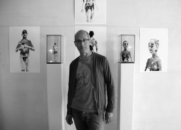 Félix señala que los artistas ya están trabajando desde primera hora de la mañana. No hay que alejarse demasiado de la casa del escultor para encontrar a Carmelo Argáiz. Mientras el coordinador recuerda que no ha desayunado aún, Argáiz explica que ha transformado el garaje de Félix en una peculiar sala de exposiciones. Allí ya se encuentra en pleno montaje de ‘Asphodeus’ una colección de esculturas figurativas y fotomontajes, en los que la flora silvestre tiene un especial protagonismo, así como el color y el punto de vista que adquieren las tallas.“No me quiero apartar –indica Argáiz- del camino sobre el que ya estaba trabajando y por eso he tratado de adaptarlo a Santa Lucía”. Quizá con esa intención ha jugado en los fotomontajes con las dimensiones obteniendo escenas realmente sugerentes en las que se entremezclan personajes ficticios y autorretratos. “Está siendo –describe- un trabajo complejo, en el que he enlazado fotografía, escultura, grabados y dibujo, e incluso fotografías que tienen mucho de dibujo”. Y mucho color, en las esculturas y en las imágenes.