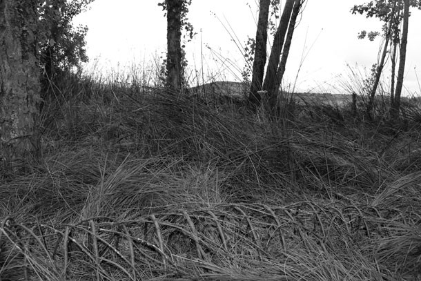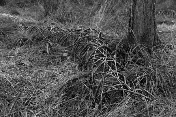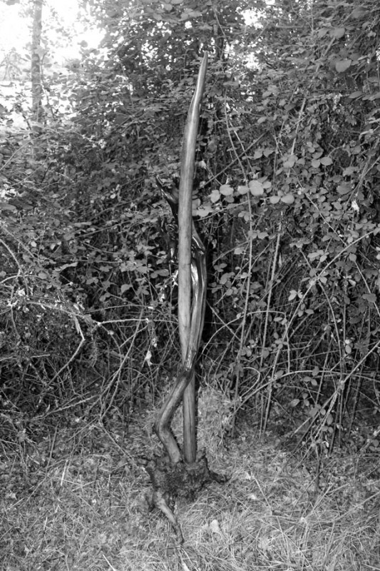 El grupo de árboles se sitúa a quinientos metros de la carretera. Dos enormes chopos ejercen de puerta de acceso a un espacio casi diáfano, en el que un tercer chopo hace de eje central. “De inmediato supe que era aquí –describe-, así que comencé a desarrollar ‘Labranca’, la lombriz de tierra”. Sergio Ferrúa propone una reflexión sobre lo que sucede bajos nuestros pies. “Se trata –resalta- de una interacción biológica, de una reflexión sobre la pirámide de la vida”. Del retorno entre unos seres vivos y otros.
