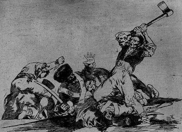 Nunca hasta entonces la guerra y sus consecuencias habían sido retratadas con tanta crudeza. Goya se convirtió, de esta forma, en cronista y reportero gráfico del desastre. Hoy sabemos que la intención del pintor no era solamente denunciar una guerra concreta, la de la Independencia. Su denuncia trascendía el hecho histórico del que había sido testigo excepcional e invitaba a una reflexión general sobre la violencia sin medida y sentido, fuera del tiempo y de la circunstancia./SPOONFUL