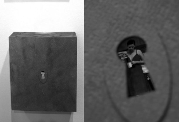 La segunda pieza la conocí en ARCO en 2011. La artista polaca Klara Petra Szabo presentó la pieza 'The only thing standing in between you and me is reality' (2010). Se trata de una caja cerrada cuyo interior sólo puede verse a través de una pequeña cerradura. El espectador ha de acercarse y mirar a través de ella para descubrir una escena de una mujer haciéndose el desayuno en camisón. Una irrupción totalmente voyeur en la intimidad y en el ámbito privado de la observada.