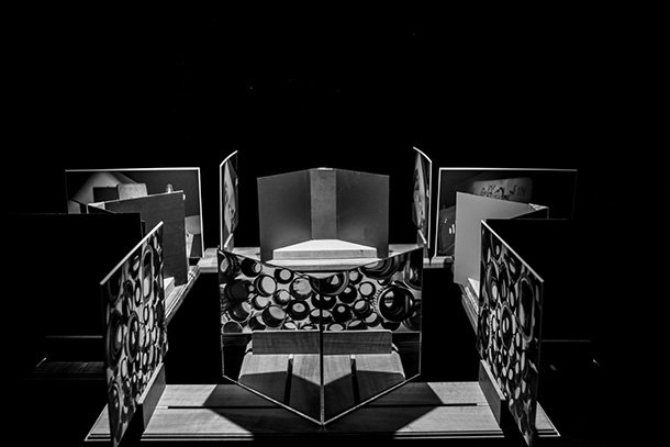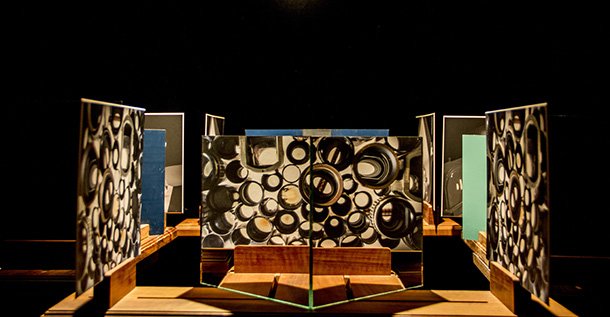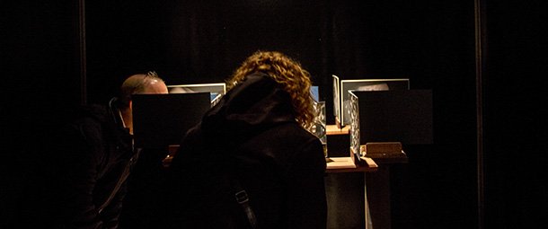 La obra de Jesús Rocandio, referida al sentido de la vista, ocupa el centro del calado de San Gregorio. El fotógrafo logroñés ha creado la pieza ‘Vision’ -palabra que indica no acentúa para no poner el foco en una sílaba en concreto. Un foco en posición cenital ilumina un espacio de tres paredes negras, generando una cámara oscura. El centro, cuatro dispositivos esteroscópicos para visión binocular, réplicas de los primeros fabricados en el mundo, y que a su vez exhiben cuatro objetos fotográficos: lentes positivas, cristal y prismas; lentes negativas, cristal y prismas; lentes compuestas y cristal, y parábolas reflectoras y espejos. “Jesús Rocandio -describe Balanza- enfrenta la pasiva actitud de ver a la acción de mirar, de dirigir la vista a un objeto, con la intención de poner foco, de focalizar”.