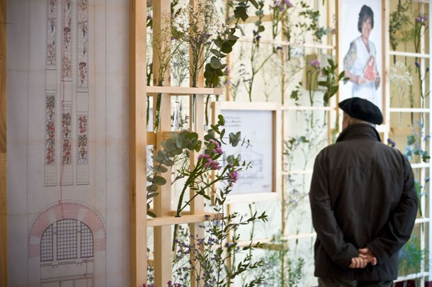 “Un sistema de estructuras temporales –describe Javier Peña- que adecuan los accesos principales del Mercado de Abastos”. Así, mediante bastidores y travesaños de madera se forma un recubrimiento que acoge los usos existentes y aporta una nueva imagen a la entrada, una fachada vegetal que durante la Navidad alojará documentación expositiva y plantas de diversas especies en soportes de cristal.